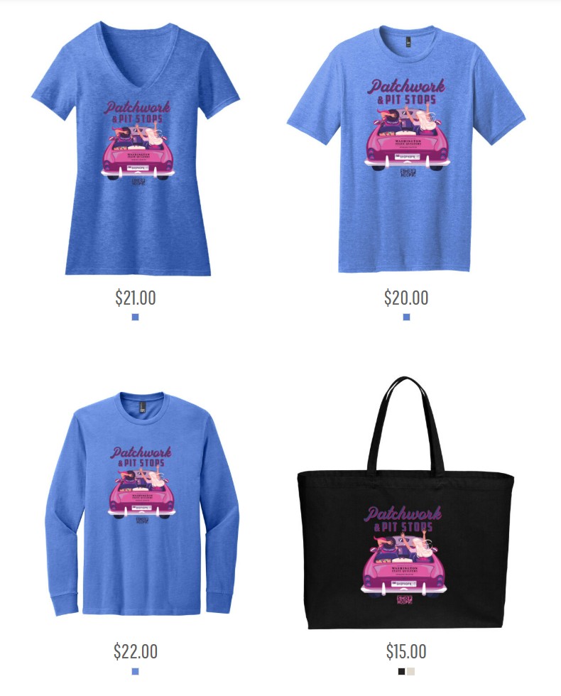 Browse a variety of styles, check the sizing chart, and place your order in time for this year’s Shop Hop & Pit Stops! Merchandise is delivered to your home.